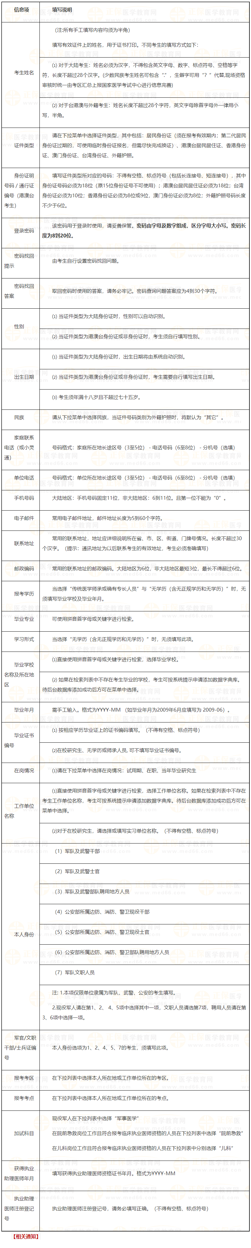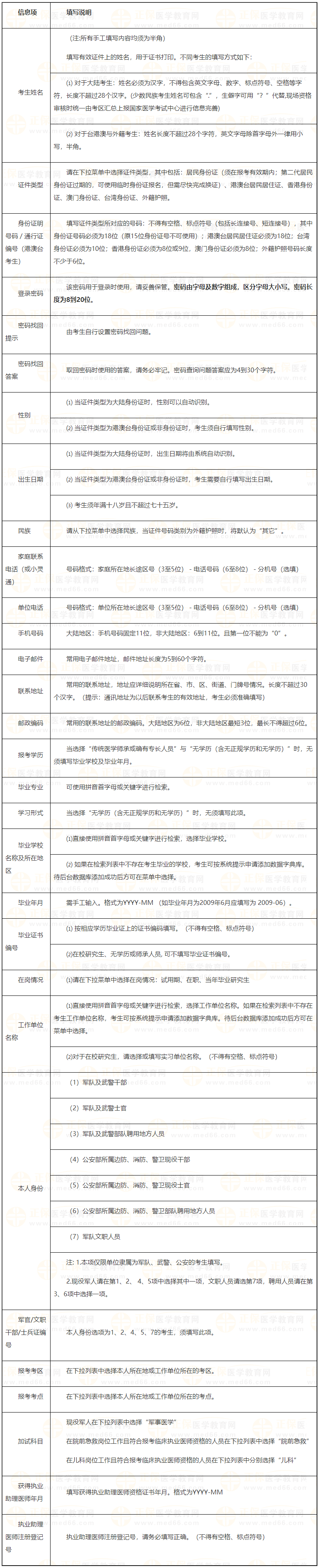 【報名指南】河南考區(qū)開封考點2024年醫(yī)師資格考試報名表填寫說明對照