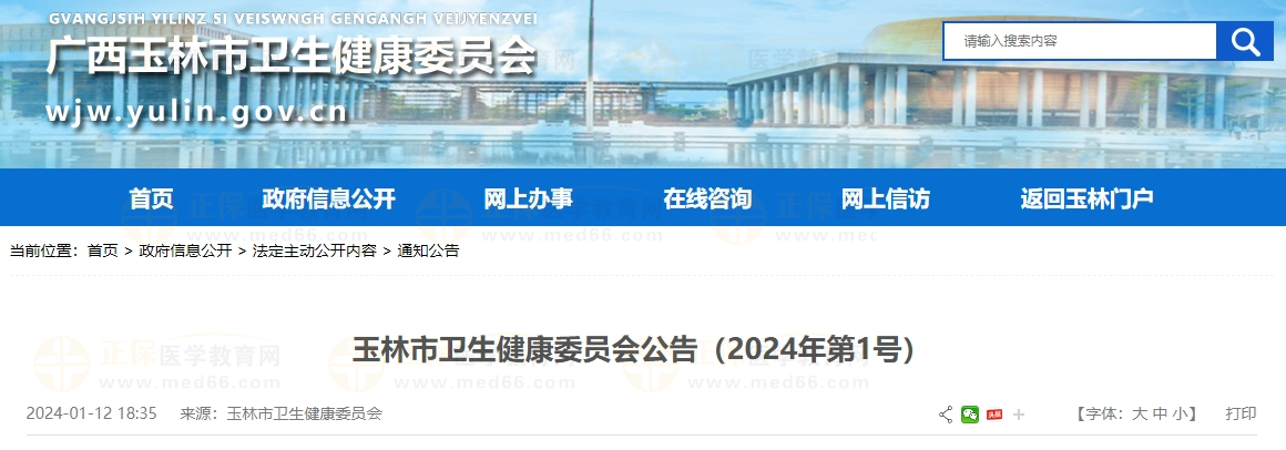 廣西考區(qū)玉林市衛(wèi)生健康委員會(huì)公告(2024年第1號)
