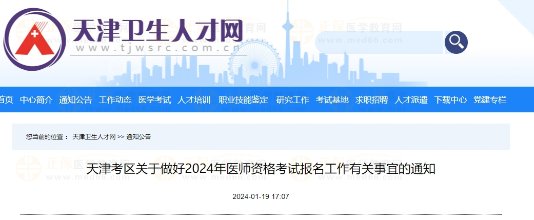 天津考區(qū)關(guān)于做好2024年醫(yī)師資格考試報(bào)名工作有關(guān)事宜的通知