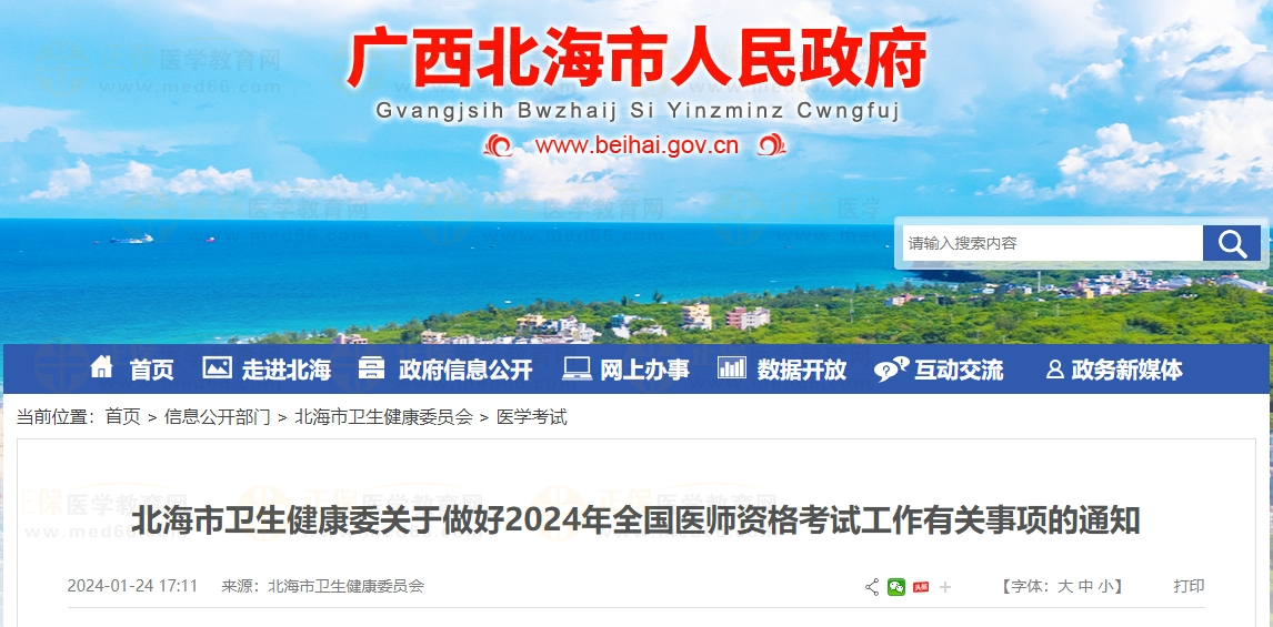 廣西考區(qū)北海市關(guān)于做好2024年全國(guó)醫(yī)師資格考試工作有關(guān)事項(xiàng)的通知