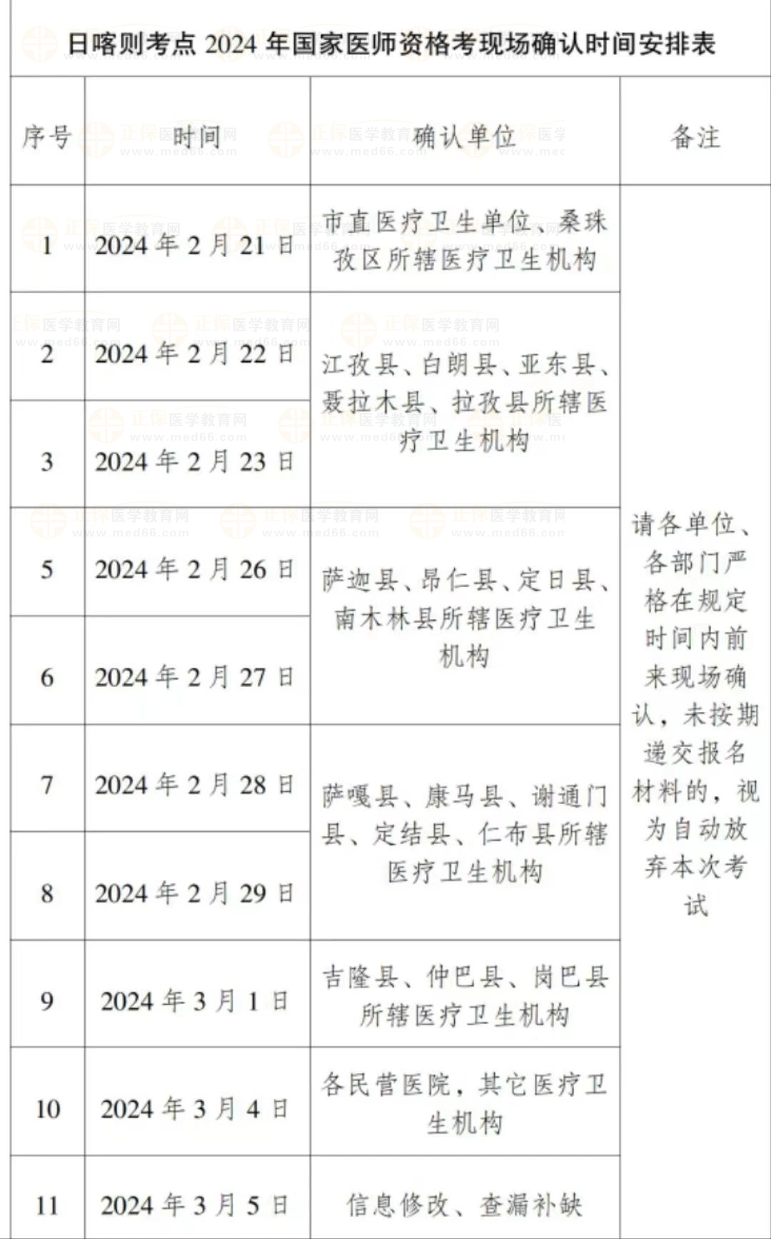 日喀則考點(diǎn) 2024 年國家醫(yī)師資格考現(xiàn)場確認(rèn)時間安排表
