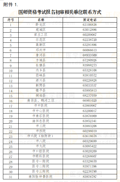 1.醫(yī)師資格考試報(bào)名初審相關(guān)單位聯(lián)系方式