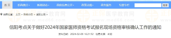 河南省信陽考點關(guān)于做好2024年國家醫(yī)師資格考試報名現(xiàn)場資格審核確認工作的通知
