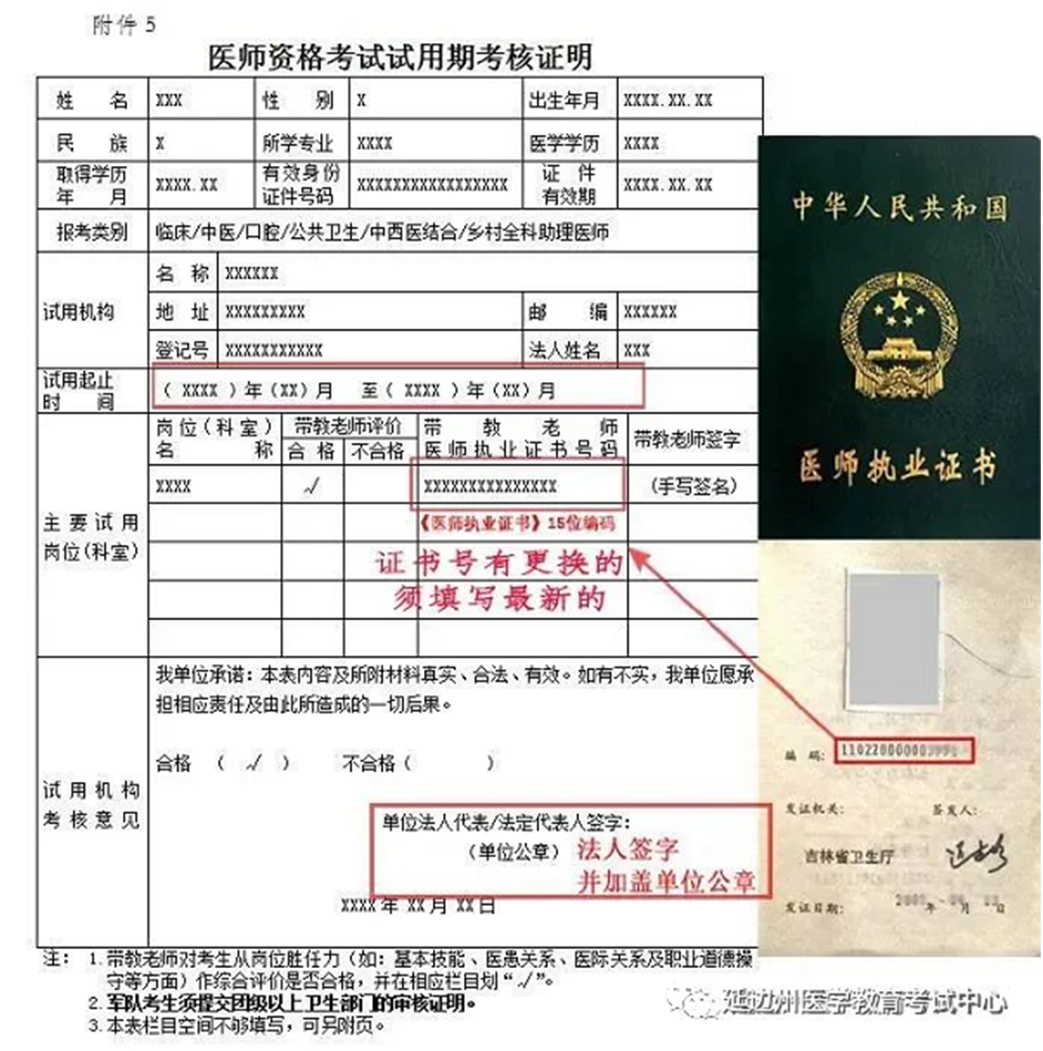 5.《醫(yī)師資格考試試用期考核證明》,需試用單位法定代表人簽字并加蓋單位公章(醫(yī)療專用章、財(cái)務(wù)專用章等不合格,表內(nèi)所有簽字處均需手寫簽字)。