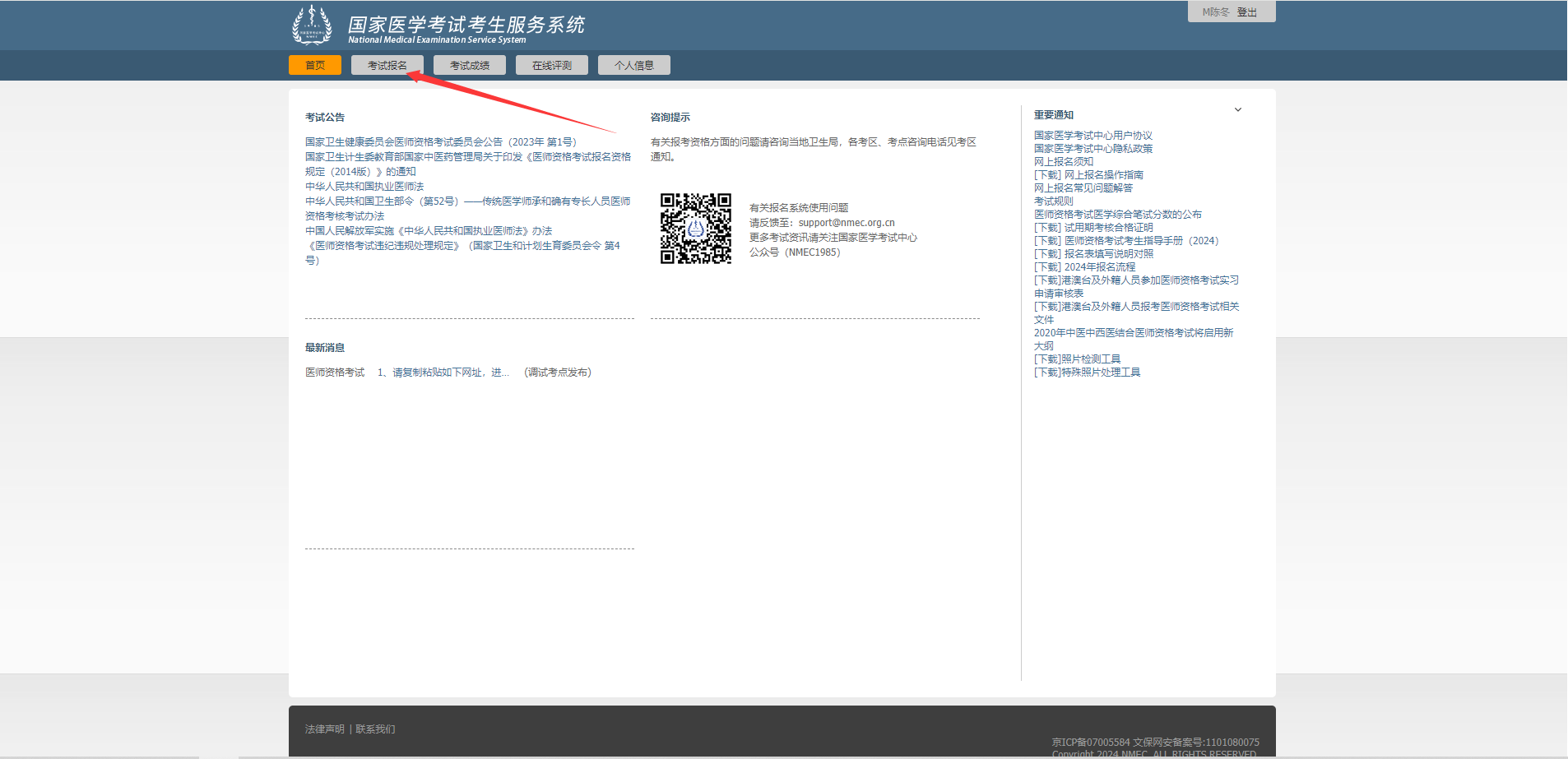 2、登錄進(jìn)入首頁后點(diǎn)擊考試報名按鈕。