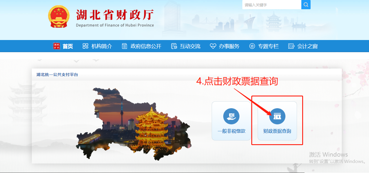 1、進(jìn)入網(wǎng)站后選擇【財政票據(jù)查詢】
