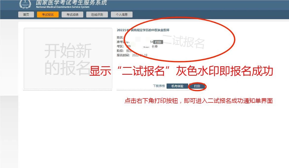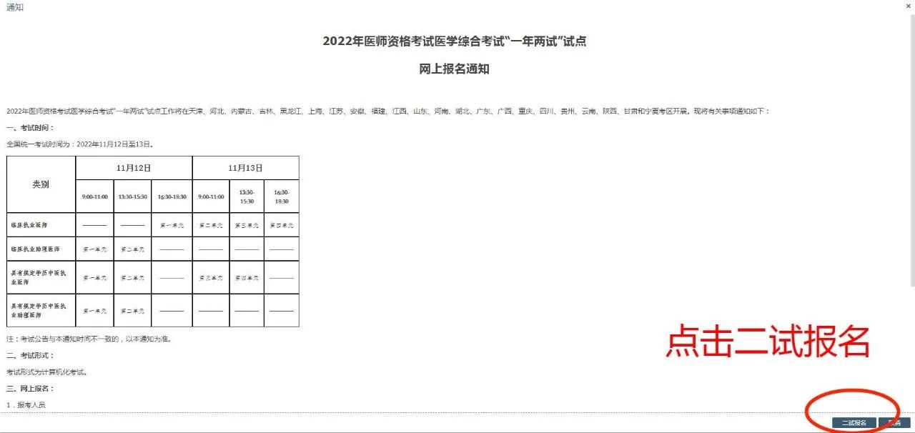 5.仔細閱讀彈出的通知,點擊右下角“二試報名”