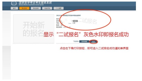 6.自動返回本頁面,出現(xiàn)“二試報名”灰色字樣說明報名成功