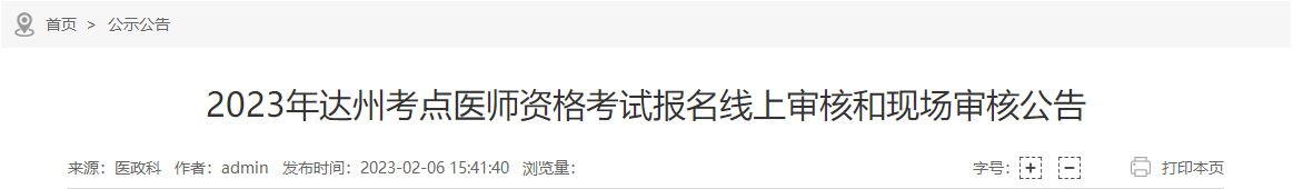 四川2023年達(dá)州考點(diǎn)醫(yī)師資格考試報(bào)名線上審核和現(xiàn)場(chǎng)審核公告