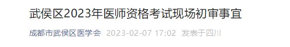 武侯區(qū)2023年醫(yī)師資格考試現(xiàn)場初審事宜