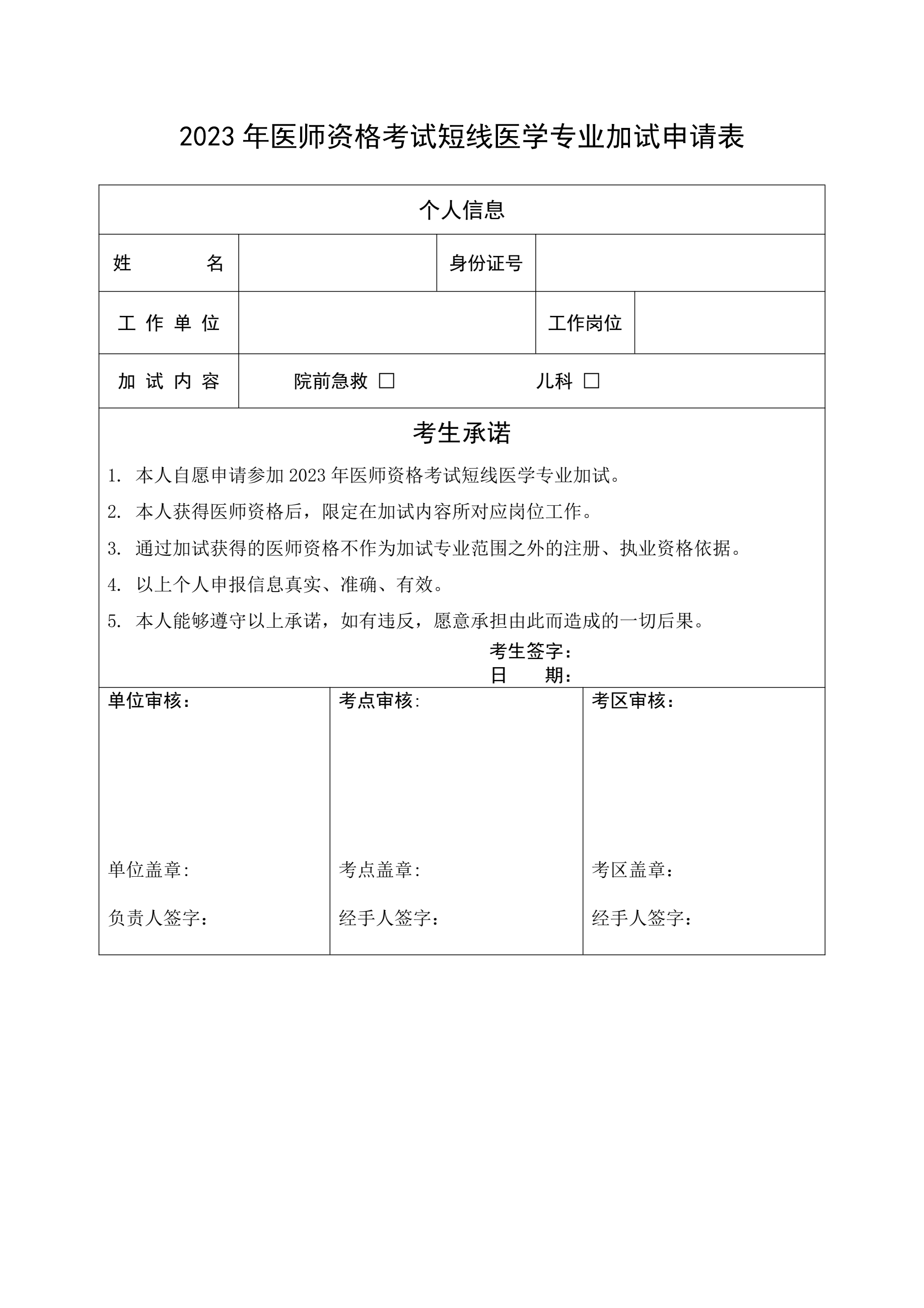【附件下載】醫(yī)師資格考試短線醫(yī)學(xué)專業(yè)加試申請(qǐng)表