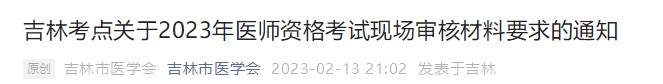 吉林考點采取微信公眾號預(yù)約審核時間的方式,預(yù)約平臺將于2月16日開放,請關(guān)注“吉林市醫(yī)學(xué)會”微信公眾號,提前預(yù)約。沒有預(yù)約的考生無法進(jìn)入現(xiàn)場審核!