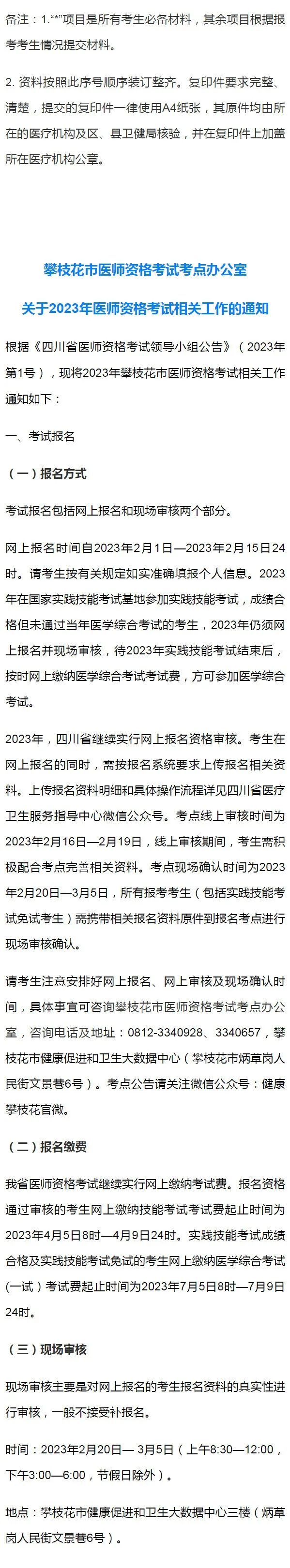 四川攀枝花2023年醫(yī)師資格考試報名現(xiàn)場審核/材料目錄/時間安排!醫(yī)學教育網小編專門整理了更新官方通知要求如下,請相關考生及時查看提前做好準備!