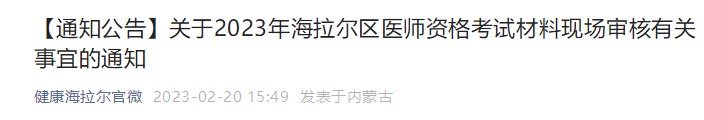 內(nèi)蒙古海拉爾區(qū)2023醫(yī)師資格考試材料現(xiàn)場審核有關(guān)事宜的通知
