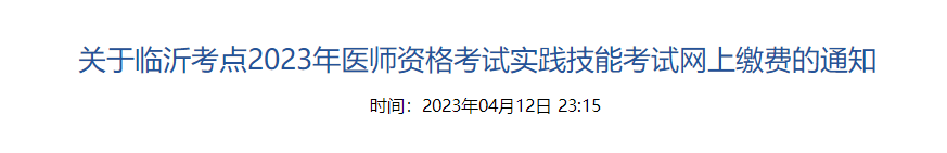 考生關(guān)注!山東聊城考點(diǎn)2023年醫(yī)師資格考試實(shí)踐技能考試網(wǎng)上繳費(fèi)已開始!
