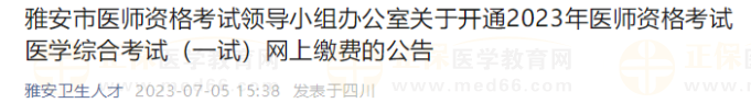 四川成都武侯區(qū)2023醫(yī)師資格醫(yī)學綜合考試繳費平臺已開通