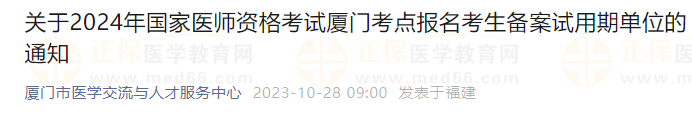 福建廈門考點2024年醫(yī)師資格考試報名考生備案試用期單位的通知