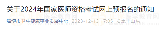2024年山東淄博醫(yī)師資格考試報名網(wǎng)上預(yù)報名1月22日開始