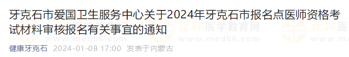 內(nèi)蒙古2024年牙克石市報(bào)名點(diǎn)醫(yī)師資格考試材料審核報(bào)名有關(guān)事宜的通知