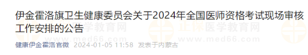 內(nèi)蒙古伊金霍洛旗2024年全國醫(yī)師資格考試現(xiàn)場審核工作安排的公告