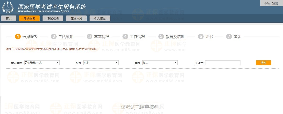 目前考試報(bào)名界面已經(jīng)更新為“開始新的報(bào)名”,但是實(shí)際點(diǎn)擊進(jìn)入選擇具體醫(yī)師資格考試類別,顯示“該考試已結(jié)束報(bào)名”,請各位考生耐心等待1月22日開始的2024醫(yī)師資格考試網(wǎng)上報(bào)名。