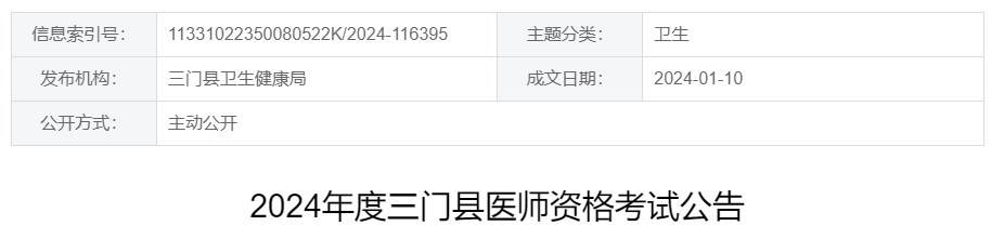 浙江臺(tái)州三門縣2024醫(yī)師資格考試報(bào)名審核通知已出,考生速看!