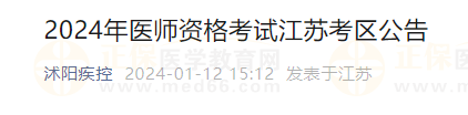 江蘇宿遷市沐陽縣轉發(fā)2024年醫(yī)師資格考試江蘇考區(qū)公告