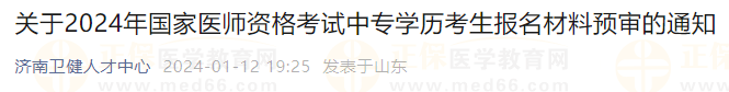 考生注意!山東濟(jì)南考點(diǎn)2024年醫(yī)師資格考試中專學(xué)歷考生報(bào)名材料預(yù)審安排
