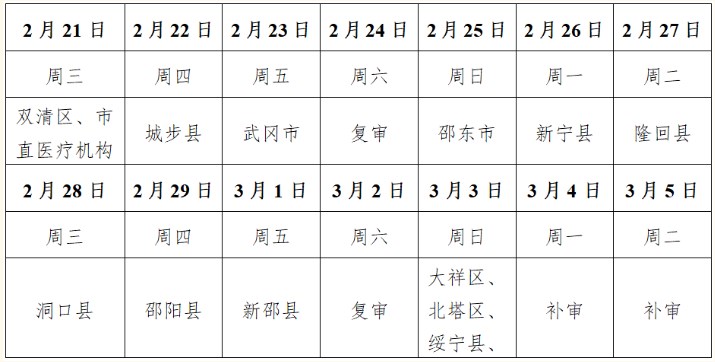 邵陽市各縣市區(qū)報名現(xiàn)場審核時間安排表