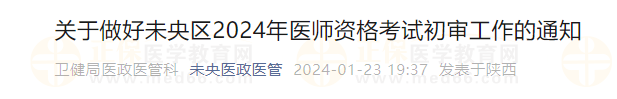 1月24日開始!陜西西安未央?yún)^(qū)2024年醫(yī)師資格考試初審工作通知