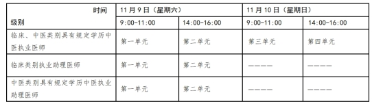 考試實行計算機化考試,軍隊現(xiàn)役人員加試軍事醫(yī)學(xué),院前急救崗位和兒科專業(yè)加試相應(yīng)內(nèi)容。執(zhí)業(yè)醫(yī)師合格分數(shù)線為360分,執(zhí)業(yè)助理醫(yī)師合格分數(shù)線為180分。統(tǒng)一考試時間如下: