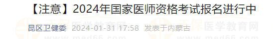 溫馨提醒:2024年醫(yī)師資格考試網(wǎng)上報(bào)名時(shí)間自2024年1月22日至2024年2月4日24時(shí)