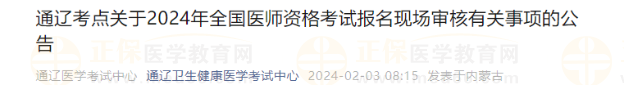 內(nèi)蒙古通遼考點關(guān)于2024年全國醫(yī)師資格考試報名現(xiàn)場審核有關(guān)事項的公告