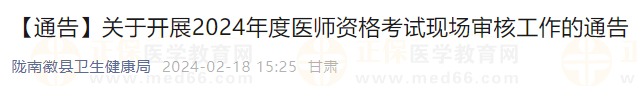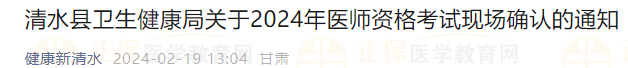 甘肅省天水市清水縣2024年醫(yī)師資格考試現(xiàn)場確認(rèn)的通知