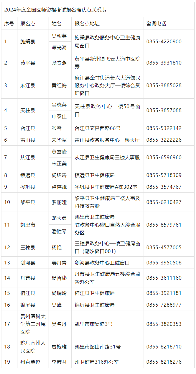 貴州黔東南考點2024年醫(yī)師資格考試現(xiàn)場審核考生須知