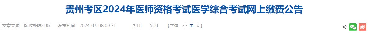 2024年全國(guó)醫(yī)師資格考試醫(yī)學(xué)綜合考試貴州考區(qū)網(wǎng)上繳費(fèi)自公告之日起開(kāi)通。現(xiàn)就有關(guān)事項(xiàng)公告如下: