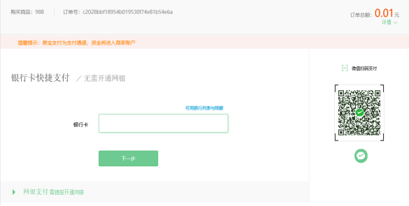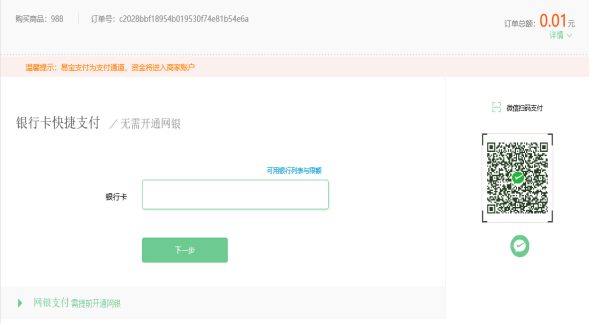 4.跳轉(zhuǎn)至“易寶支付”收銀臺(tái)頁(yè)面完成繳費(fèi)。