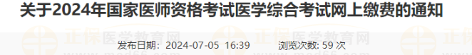 山東濟(jì)寧市2024年國(guó)家醫(yī)師資格考試醫(yī)學(xué)綜合考試網(wǎng)上繳費(fèi)的通知
