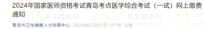 2024年國家醫(yī)師資格考試青島考點(diǎn)醫(yī)學(xué)綜合考試(一試)網(wǎng)上繳費(fèi)通知