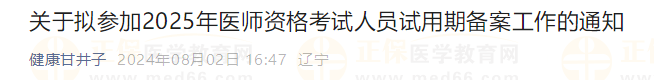 考生注意!遼寧大連市甘井子區(qū)2025年醫(yī)師資格報(bào)名備案8月31日截止!