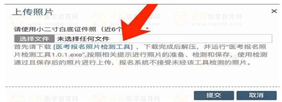 (一)考生在網(wǎng)報(bào)系統(tǒng)上傳個(gè)人小二寸白底證件照時(shí),應(yīng)按照系統(tǒng)提示內(nèi)容下載并運(yùn)行“醫(yī)考報(bào)名照片檢測(cè)工具”,網(wǎng)報(bào)系統(tǒng)只接受經(jīng)該工具檢測(cè)通過(guò)且保存后的照片進(jìn)行上傳。