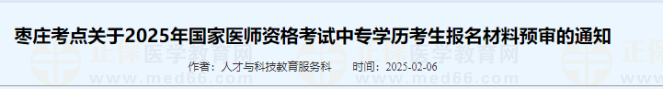 山東棗莊考點(diǎn)關(guān)于2025年醫(yī)師資格考試中專學(xué)歷考生報(bào)名材料預(yù)審的通知
