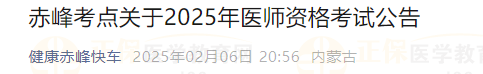 內(nèi)蒙古自治區(qū)赤峰考點(diǎn)關(guān)于2025年醫(yī)師資格考試公告