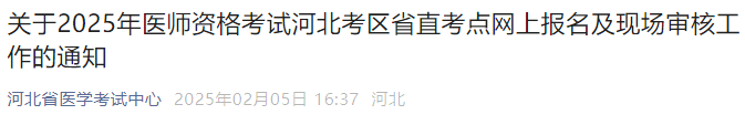 河北省直考點(diǎn)2025年醫(yī)師資格考試報(bào)名審核要求已公布!請相關(guān)考生及時(shí)查看官方通知要求,按時(shí)參與報(bào)名審核。
