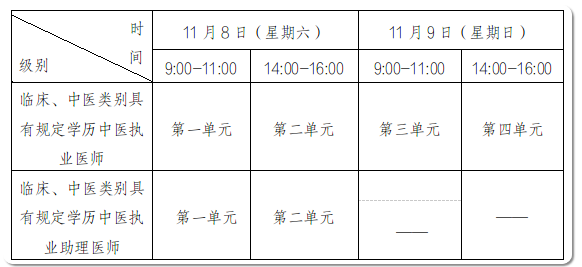 醫(yī)學綜合考試“一年兩試”試點考試時間如下: