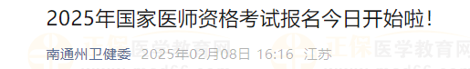 江蘇南通州考點(diǎn)2025年醫(yī)師資格考試報(bào)名今日開始啦!