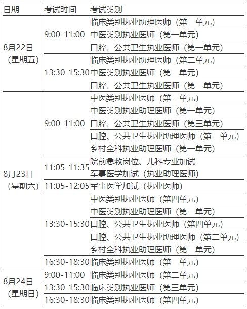 2025年繼續(xù)開展醫(yī)師資格考試臨床類別、中醫(yī)類別具有規(guī)定學(xué)歷中醫(yī)醫(yī)學(xué)綜合考試“一年兩試”試點(diǎn)。在安徽考區(qū)已報(bào)考當(dāng)年醫(yī)師資格考試,實(shí)踐技能考試合格成績在有效期內(nèi),未通過第一次醫(yī)學(xué)綜合考試且無違紀(jì)違規(guī)行為的考生,和第一次醫(yī)學(xué)綜合考試缺考及未繳納考試費(fèi)的考生,可報(bào)名參加第二次醫(yī)學(xué)綜合考試,考試時(shí)間如下: