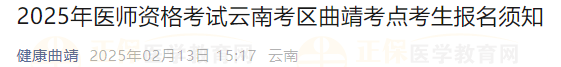 2025年醫(yī)師資格考試(云南考區(qū)曲靖考點)考生報名須知,網上報名時間自2025年2月8日10時至2025年2月21日24時。請考生按有關規(guī)定如實準確填報個人信息。醫(yī)學教育網小編為大家整理通知如下: