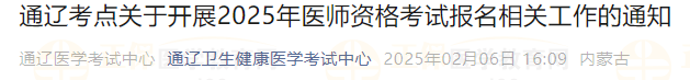 內(nèi)蒙古通遼考點(diǎn)關(guān)于2025年醫(yī)師資格考試報名相關(guān)工作的通知