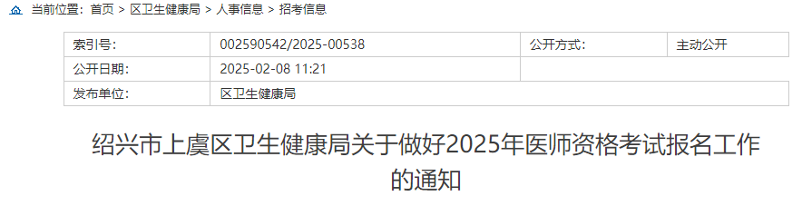 1.紹興市上虞區(qū)2025年醫(yī)師資格考試報名現場確認安排